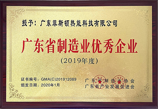 1月,廣東菲思盾熱能科技有限公司榮獲“廣東省制造業(yè)優(yōu)秀企業(yè)”稱號(hào)。