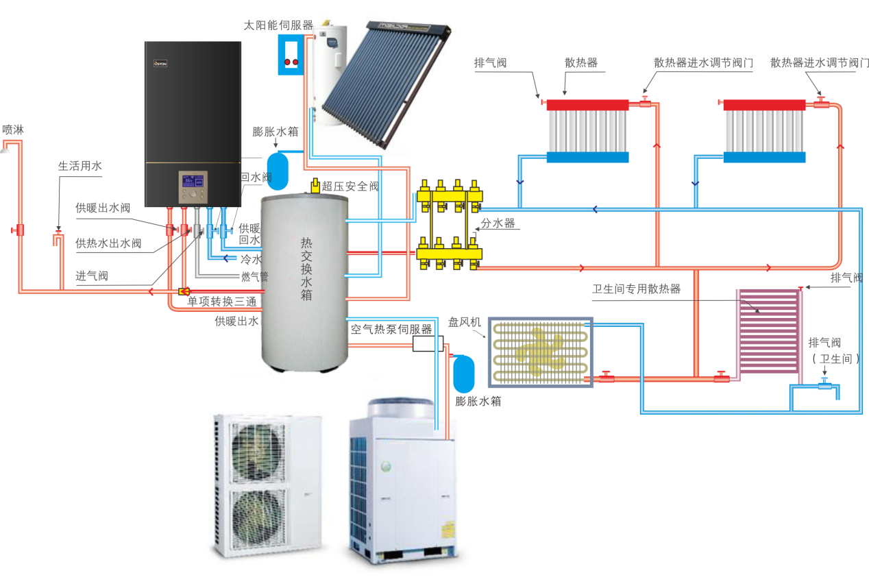 菲思盾洗浴+采暖系統(tǒng)是針對中國小康家庭設(shè)計的以天然氣為主要能源的家庭分戶獨(dú)立式采暖系統(tǒng)。集舒適取暖、生活熱水供暖于一體。該系統(tǒng)包括燃?xì)獗趻鞝t、輸水管道、散熱器、控溫閥、分水器、溫度控制系統(tǒng)圖及各種尖端設(shè)備,經(jīng)科學(xué)的專業(yè)設(shè)計、合理的造型和匹配調(diào)試,達(dá)到整個系統(tǒng)精確控溫,高效、節(jié)能、環(huán)保、智能運(yùn)行,能完全滿足不同家庭的日常取暖與生活熱水的需要。
