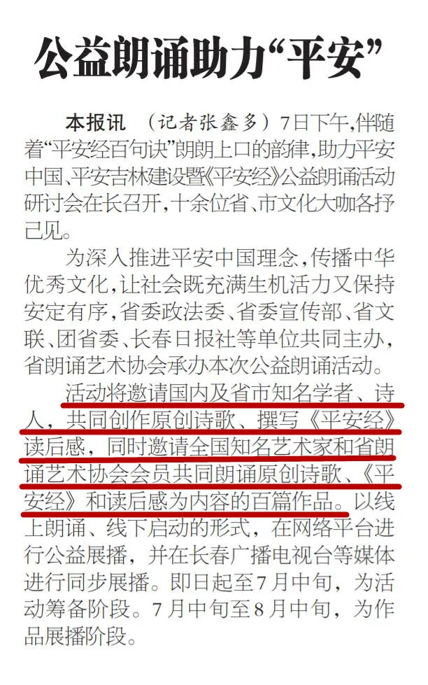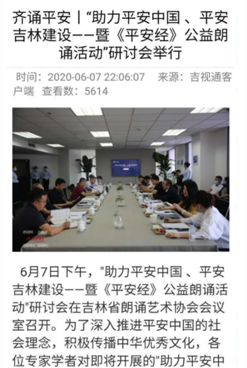 令人瞠目結(jié)舌的是,這竟然還引來(lái)了眾多衙門和名流的熱烈追捧,甚至還有官方媒體組織了“《平安經(jīng)》公益朗誦活動(dòng)”研討會(huì)、朗誦會(huì)等等。當(dāng)?shù)啬诚到y(tǒng)、部門微信公號(hào)還曾刊發(fā)書評(píng),稱贊此書“值得一讀”、“學(xué)者閱讀此書,頓悟平安哲理,商賈閱讀此書,企業(yè)平安無(wú)虞,民眾閱讀此書,安享世間太平”。