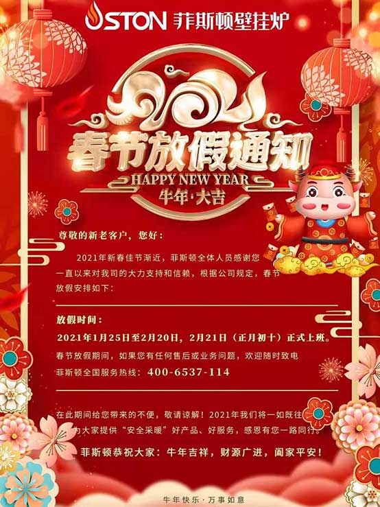 在此期間給您帶來的不便,敬請諒解!2021年我們將一如既往為大家提供“安全采暖”好產(chǎn)品、好服務(wù),感恩有您一路同行。