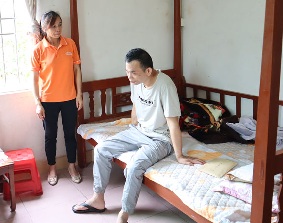 領(lǐng)導(dǎo)們親切地與黃本輝交談,詢問病情