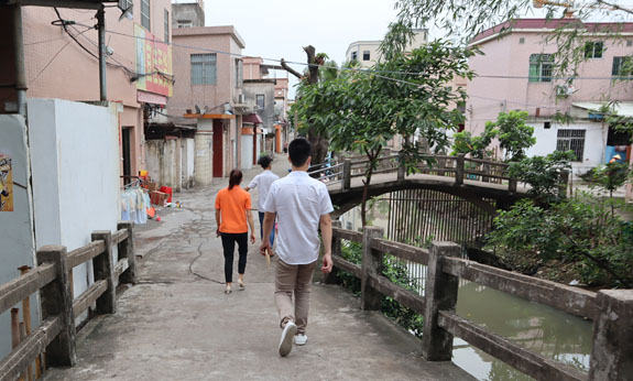 穿過大街小巷前往員工龔雪嬌家中