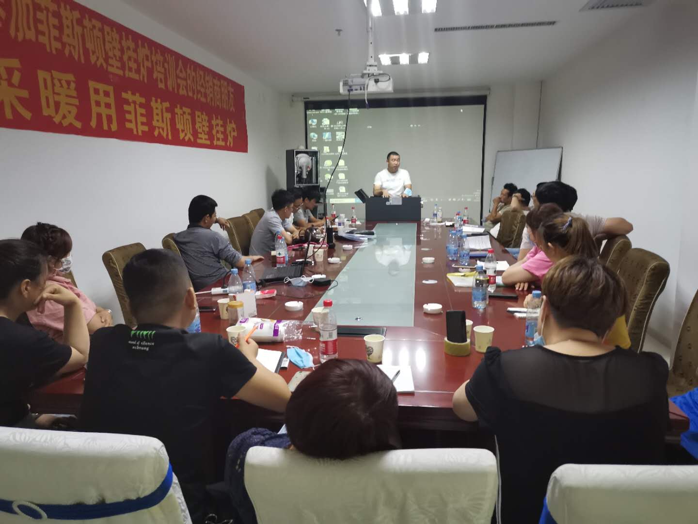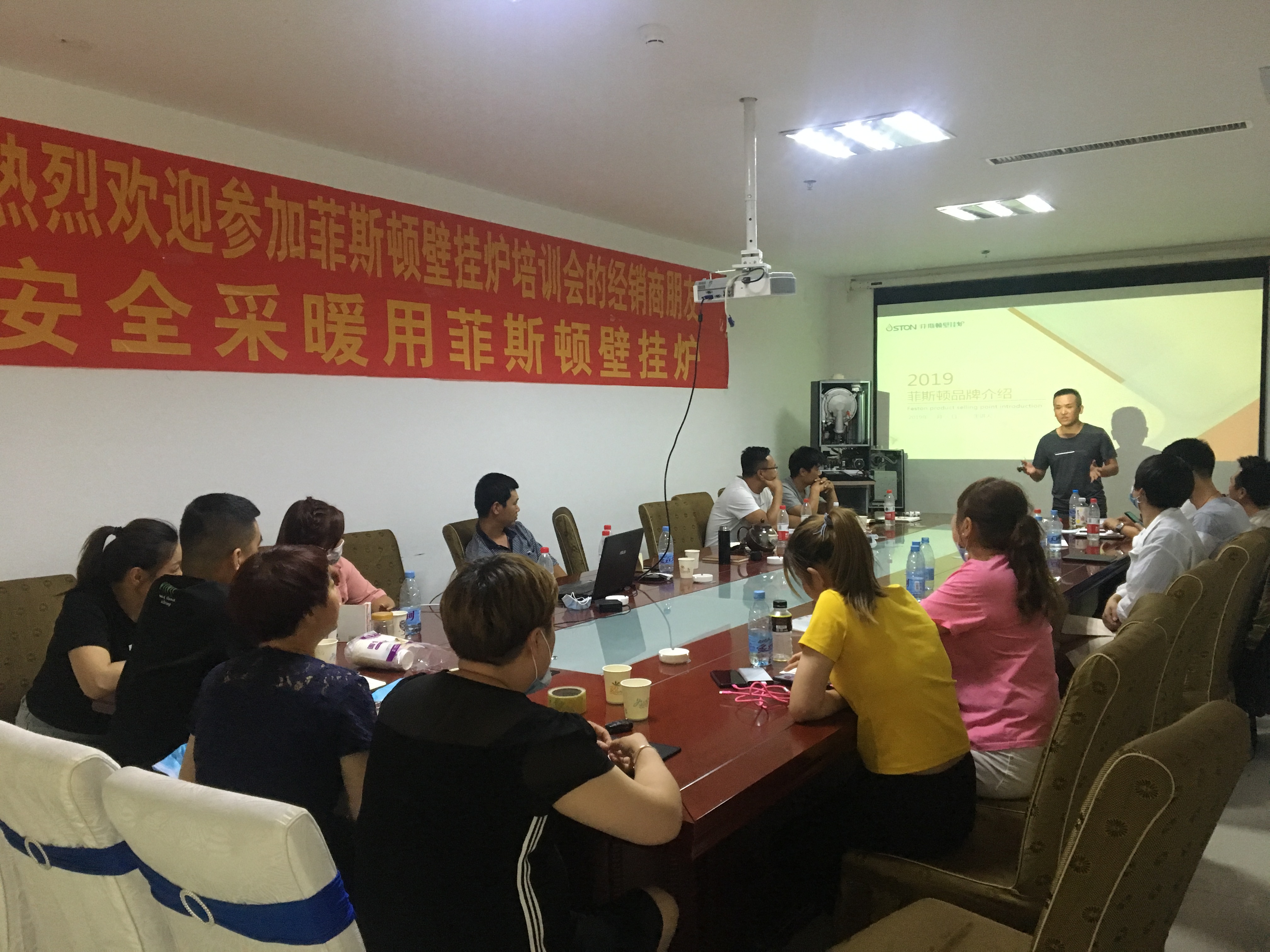 趁著6月份這個非采暖期的壁掛爐過渡季節(jié),廣東菲思盾公司總部特派出營銷總監(jiān)張清華及總部售后經(jīng)理岑方生親身前往新疆庫爾勒地區(qū),開展了為期兩天的經(jīng)銷商市場與技術及售后培訓大會。