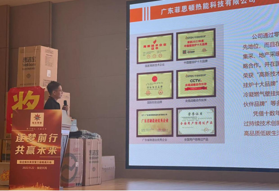作為本次盛會(huì)唯一的壁掛爐品牌企業(yè),廣東菲思頓熱能科技有限公司深度參與了本次大會(huì)。包括作為協(xié)辦單位、出臺(tái)渠道促銷政策、會(huì)議贊助等多種形式。一方面彰顯了菲思盾壁掛爐大力拓展當(dāng)?shù)厍揽焖侔l(fā)展零售的決心,另一方面也希望借以大會(huì)這個(gè)高質(zhì)量平臺(tái),聯(lián)同振東商務(wù)有限公司以及多家暖通產(chǎn)品行業(yè)翹楚實(shí)現(xiàn)信息互通、價(jià)值共創(chuàng)、產(chǎn)銷共贏的目的,加快當(dāng)?shù)乇趻鞝t產(chǎn)品整體銷售推廣步伐,了解并完善本地壁掛爐銷售服務(wù)體系,進(jìn)一步在當(dāng)?shù)叵M(fèi)群體建立菲思盾壁掛爐高品質(zhì)優(yōu)服務(wù)的企業(yè)品牌形象。