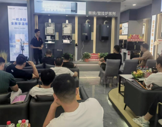 活動(dòng)伊始,售后技術(shù)部周部長(zhǎng)就通過全預(yù)混A9壁掛爐以及VSH10壁掛爐兩款代表性產(chǎn)品的機(jī)內(nèi)部件設(shè)計(jì)、零部件優(yōu)勢(shì)、整機(jī)應(yīng)用賣點(diǎn)等方面,為大家更直觀介紹菲思盾壁掛爐基礎(chǔ)原理知識(shí)以及產(chǎn)品相關(guān)優(yōu)勢(shì)內(nèi)容。重點(diǎn)介紹新一代壁掛爐產(chǎn)品內(nèi)部配件全面升級(jí),為各位經(jīng)銷商客戶提供可靠安全的質(zhì)量保證。分享中不時(shí)發(fā)出陣陣稱贊聲,大家對(duì)菲思盾的新產(chǎn)品紛紛給予高度評(píng)價(jià),并表現(xiàn)出濃厚的興趣。