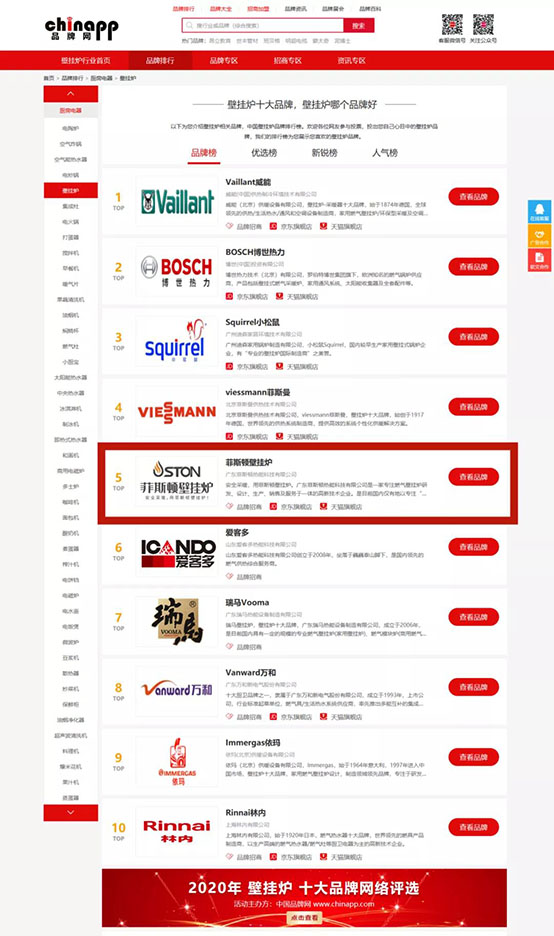 實(shí)力見(jiàn)證大品牌,菲思盾榮登中國(guó)壁掛爐十大品牌榜第五