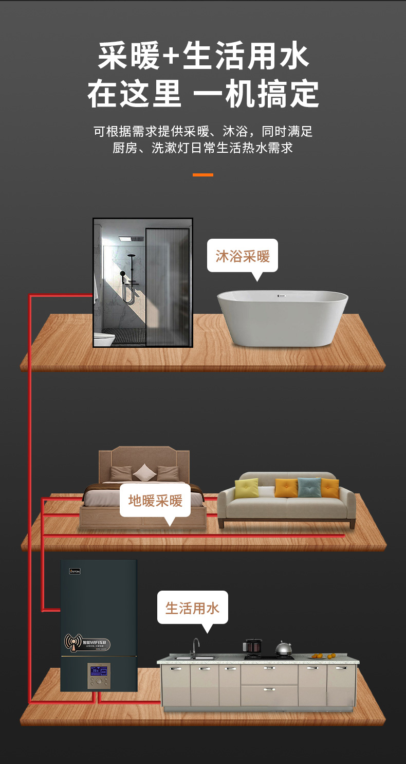 全屋供暖+洗澡+生活熱水=全然滿足